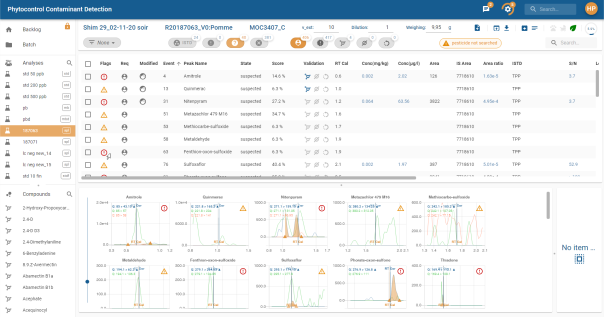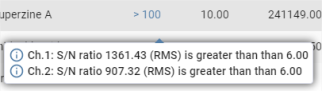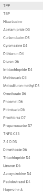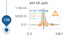 Les molécules de type ISTD sont présélectionnées afin de les ajouter directement au filtre. Elles sont représenté via le badge