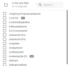 Une zone de recherche permet d’entrer le nom d’une molécule recherchée afin de construire le filtre plus facilement :